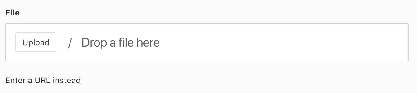 Yous can upload (or elevate and drop) a new file to associate with your document or y'all tin can enter an URL instead, to link to a cloud based file, such equally a file stored on Box, Dropbox, Google Bulldoze, etc ...